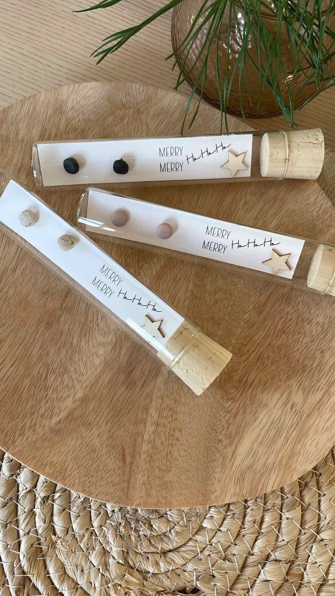 handgemaakte clay studs in een glazen flesje